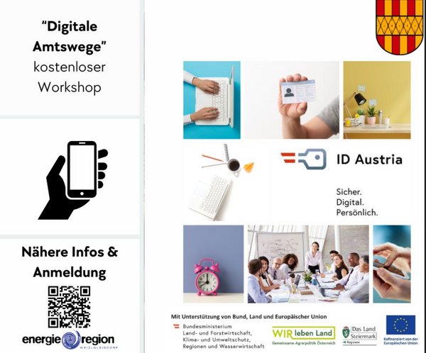 Die Energie-Region Weiz-Gleisdorf mit dem "Technik in Kürze-Team" wir Ihnen die Nutzung der ID Austria mit den verschiedenen Funktionen, PDF-Signaturen, Online-Amtswege, Versicherungs- und Pensionkontenabfragen sowie Strafregisterauszüge bzw. Unterzeichnung von Volksbegehren näherbringen.