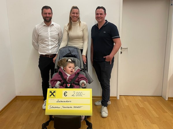 Insgesamt wurde von den TeilnehmerInnen 2.000 Euro an Startgebühr gespendet. Bgm. Johannes Hiebler-Texer und Lauforganisator Thomas Promitzer übereichten an Valentina Mahr, die an der Glasknochenkrankheit erkrankt ist, die Spende. Mit dem Spendengeld wird ein Laptop mit Augenerkennung mitfinanziert und damit ein wichtiger Beitrag zu ihrem Alltag geleistet.