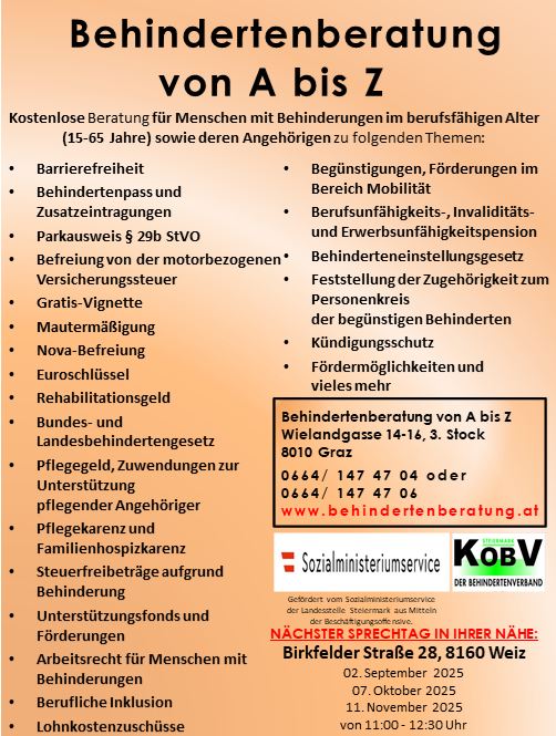 Wir möchten Sie auch über die kostenlose Energieberatung, die es vom Land Steiermark gibt, hinweisen. Interssierte können umfassende Informationen rund um Energiesparenabrufen sowie direkt einen Termin vereinbaren.