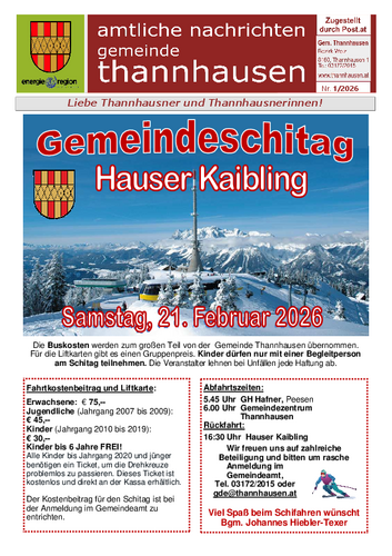 Amtliche Nachrichten der Gemeinde Thannhausen Jänner 2021