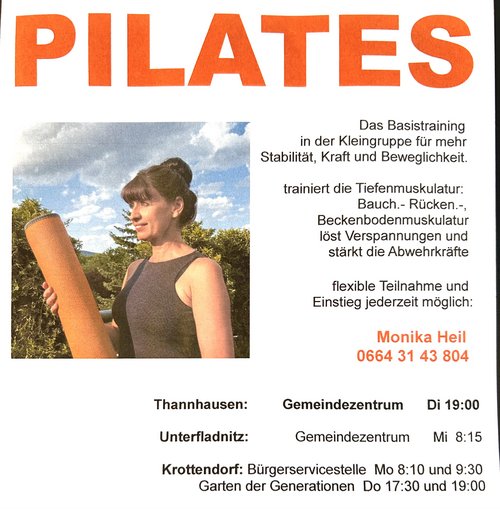 Basistraining in der Kleingruppe für mehr Stabilität, Kraft und Beweglichkeit. Pilates trainiert die Tiefenmuskulatur, die Bauch,- Rücken und Beckenbodenmuskulatur, löst Verspannungen und stärkt die Abwehrkräfte.