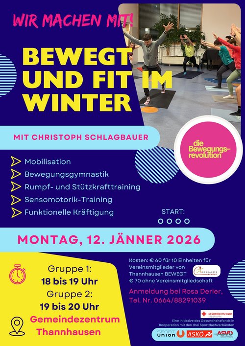 Jeden Montag, ab 12. Jänner 2026 im Gemeindezentrum Thannhausen