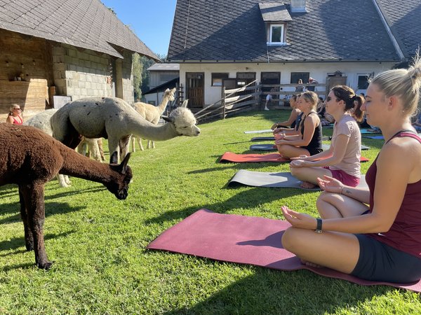 Alpaka-Yoga beim Dörflgraf – Entspannung mit tierischer Gesellschaft