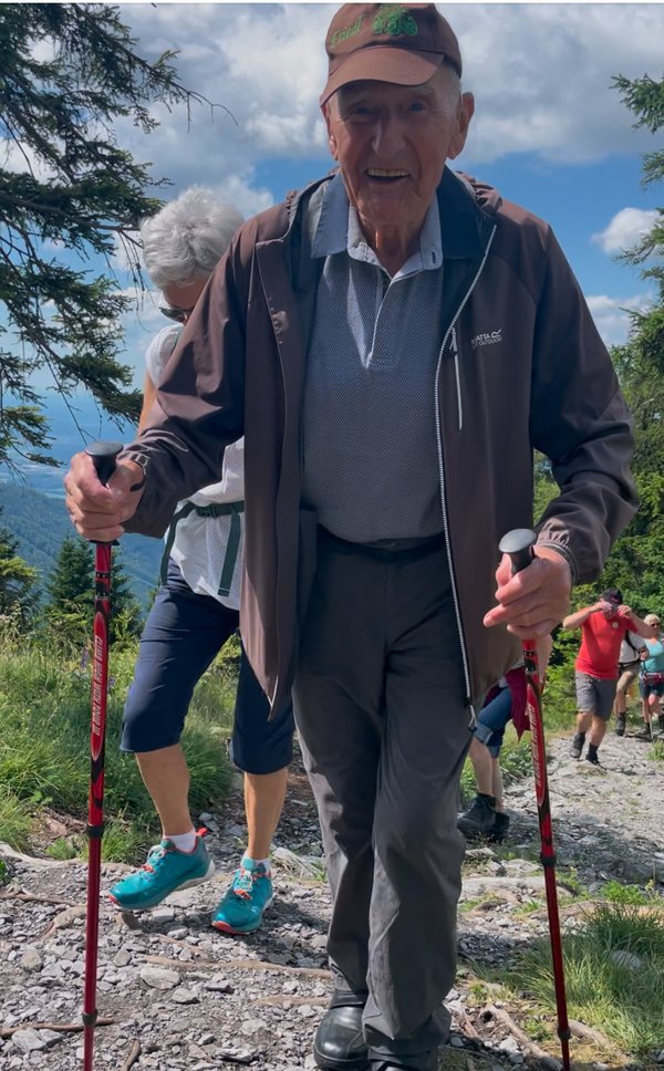 Mühelos schaffte er aber selbst den letzten Anstieg zum Gipfelkreuz. Seine beeindruckende Vitalität wurde von allen Anwesenden mit großem Applaus gewürdigt.