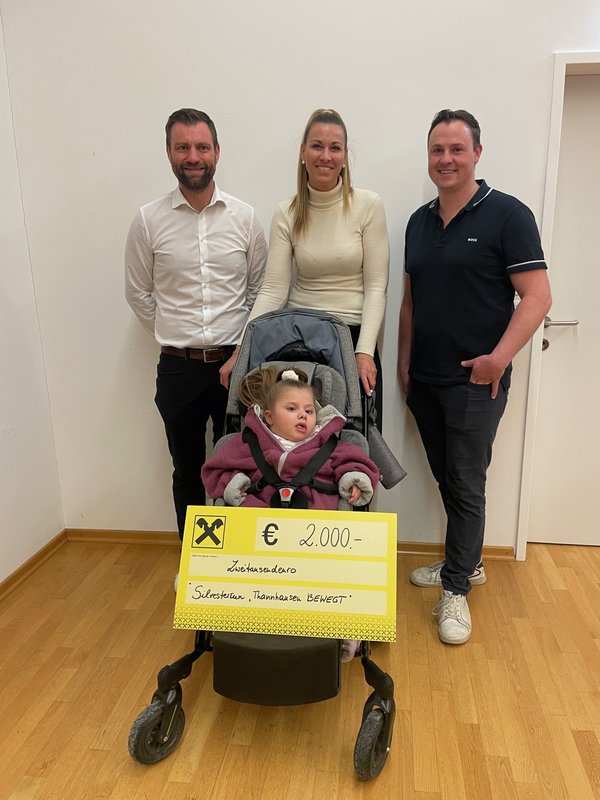Insgesamt wurde von den TeilnehmerInnen 2.000 € an Startgebühr gespendet. Bgm. Hiebler-Texer und Lauforganisator und Gemeinderat Thomas Promitzer übereichten an Valentina Mahr, die an der der Glasknochenkrankheit erkrankt ist, die Spende. Mit dem Spendengeld wird ein Laptop mit Augenerkennung mitfinanziert und damit ein wichtiger Beitrag zu ihrem Alltag geleistet.
